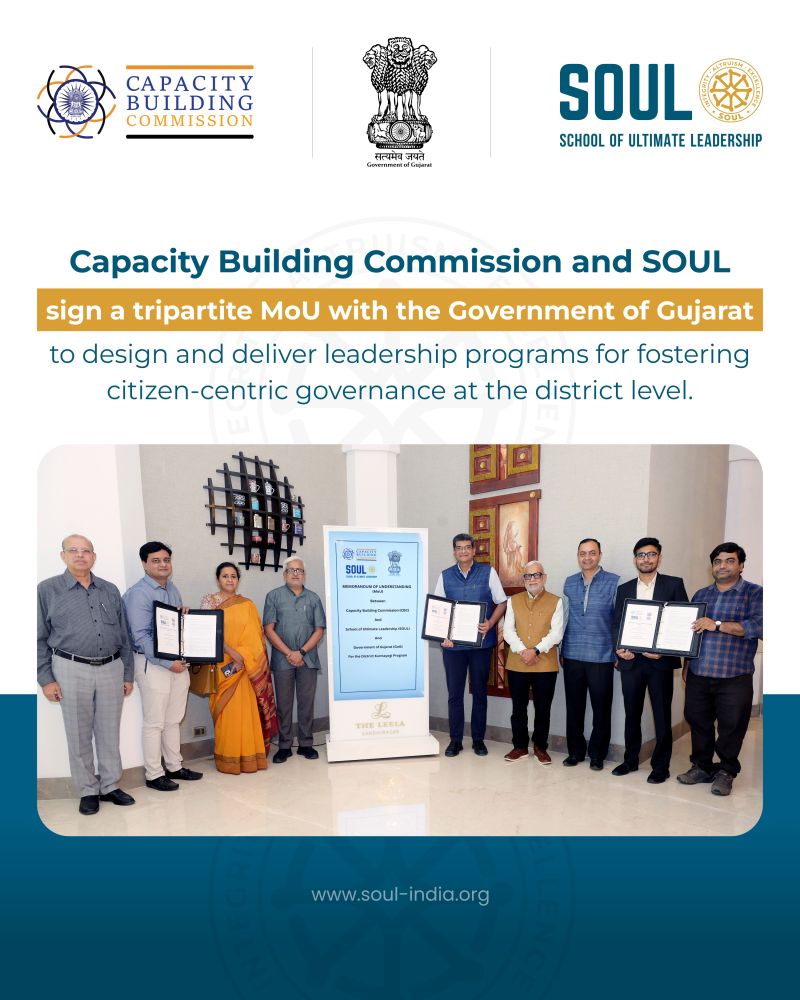 Signing of a tripartite MoU between the Capacity Building Commission, the School of Ultimate Leadership, and the Government of Gujarat