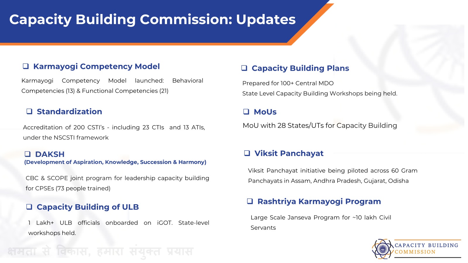 Learn about the Capacity Building Commission, its structure, leadership, and how we work to transform civil service capacity building in India.