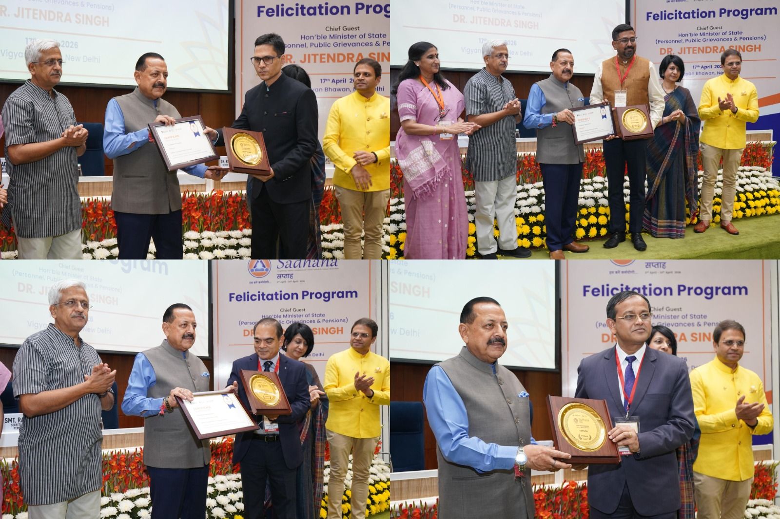 Fri, 17 Apr 2026Top-performing Ministries, States, UTs, and government departments/agencies were presented with awards and certificates by MoS (PP), Dr. Jitendra Singh, at the SADHANA Saptah felicitation ceremony held in New Delhi