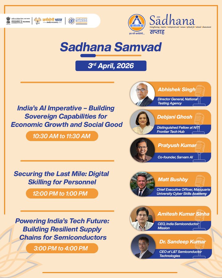 Thu, 2 Apr 2026Key Highlights of 3rd April Technology Day Webinars: Expert Sessions on AI, Cybersecurity, and Semiconductors under Karmayogi Sādhana Saptah